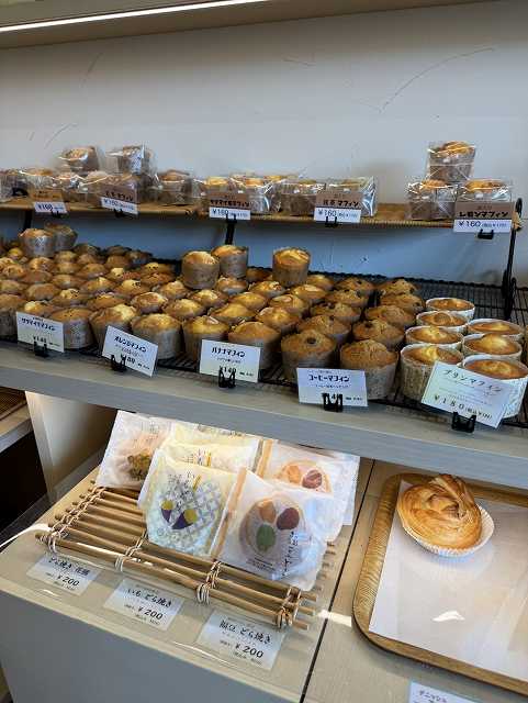 店内で焼き立てのパンとマフィンが人気です