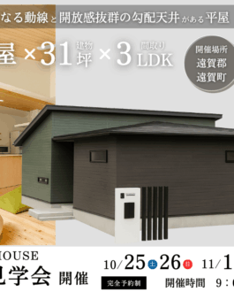 10月25日(土)〜11月3日(祝・月)【平屋見学会】遠賀郡遠賀町| 家事が快適になる動線と勾配天井がある平屋